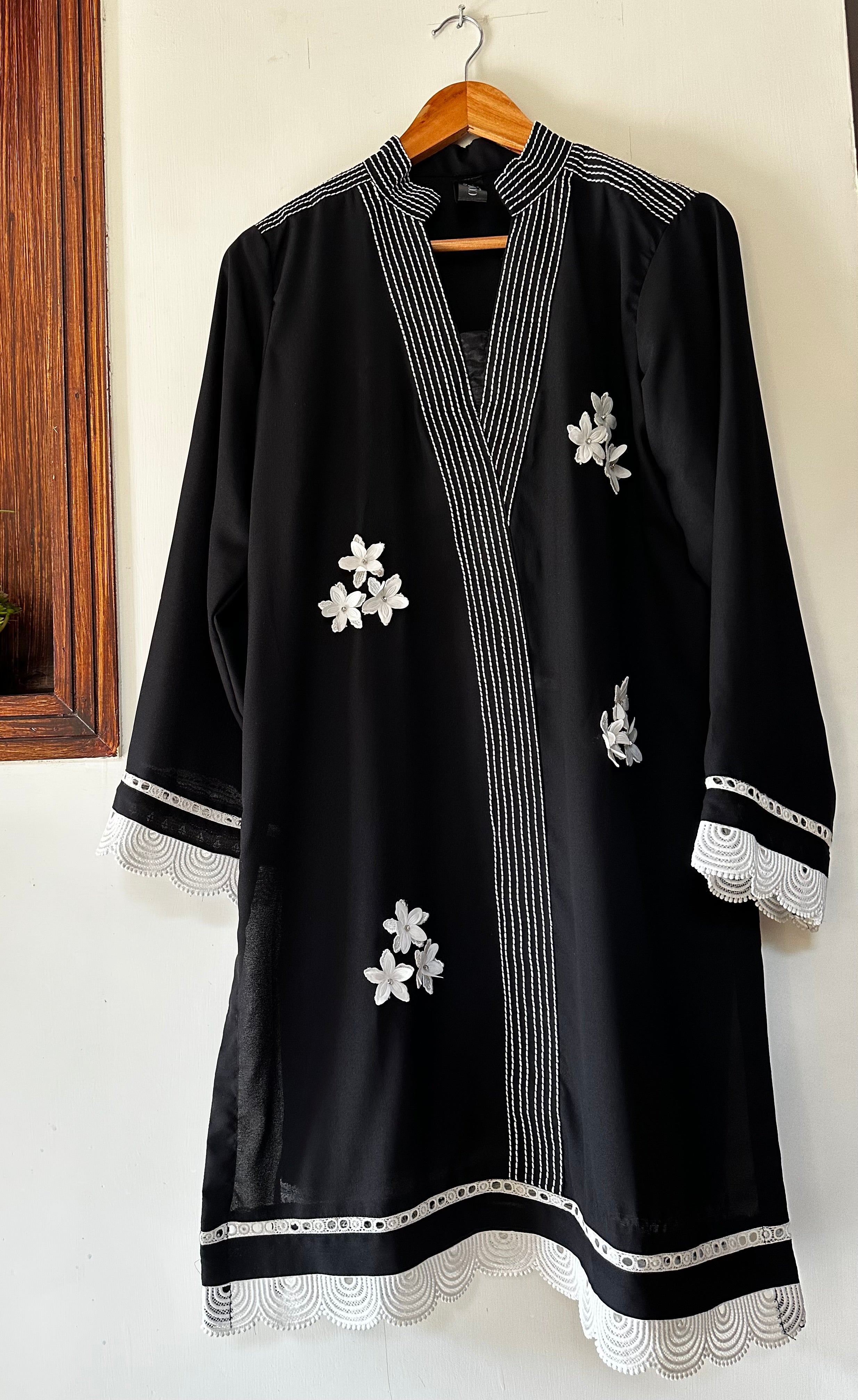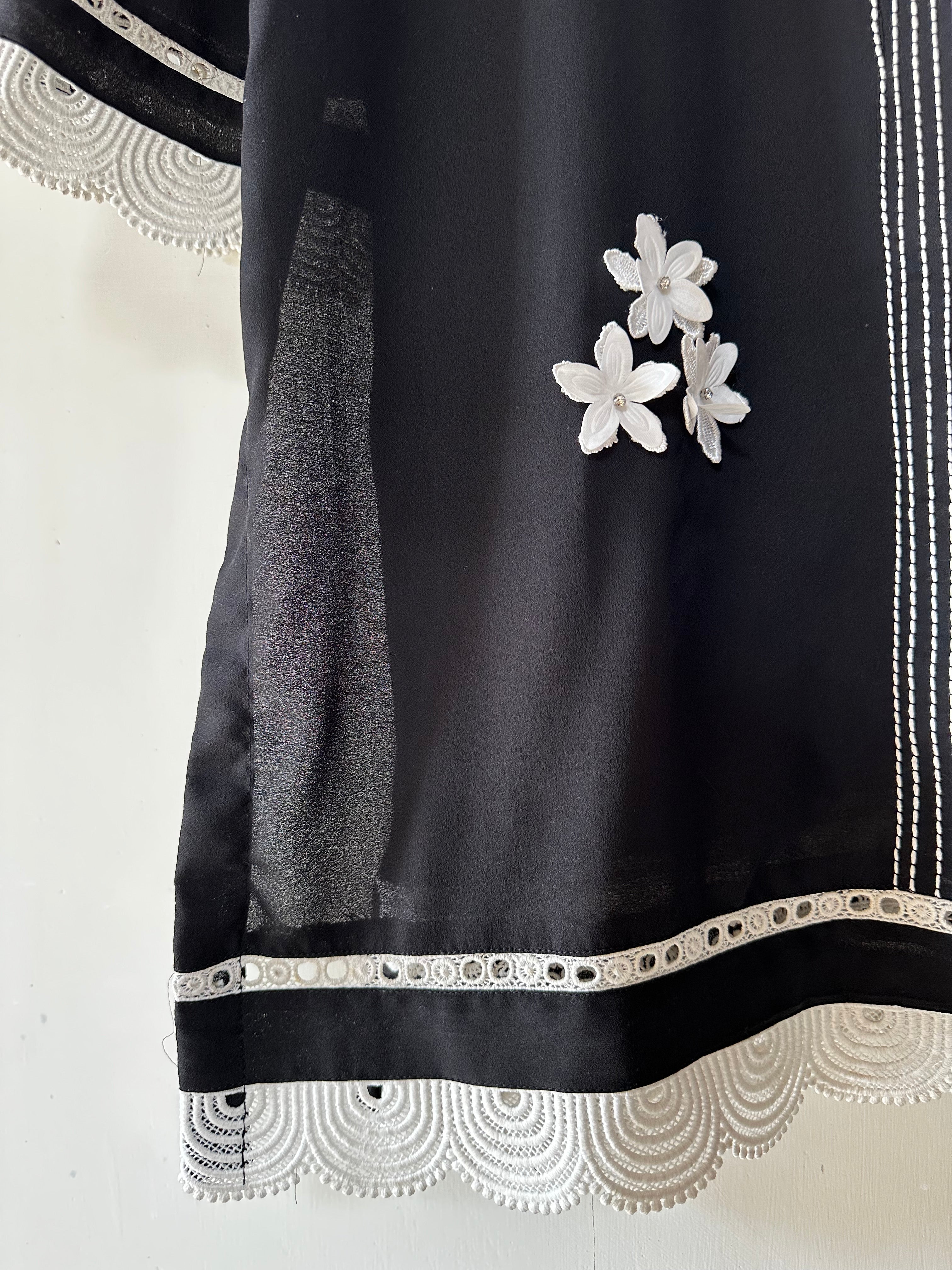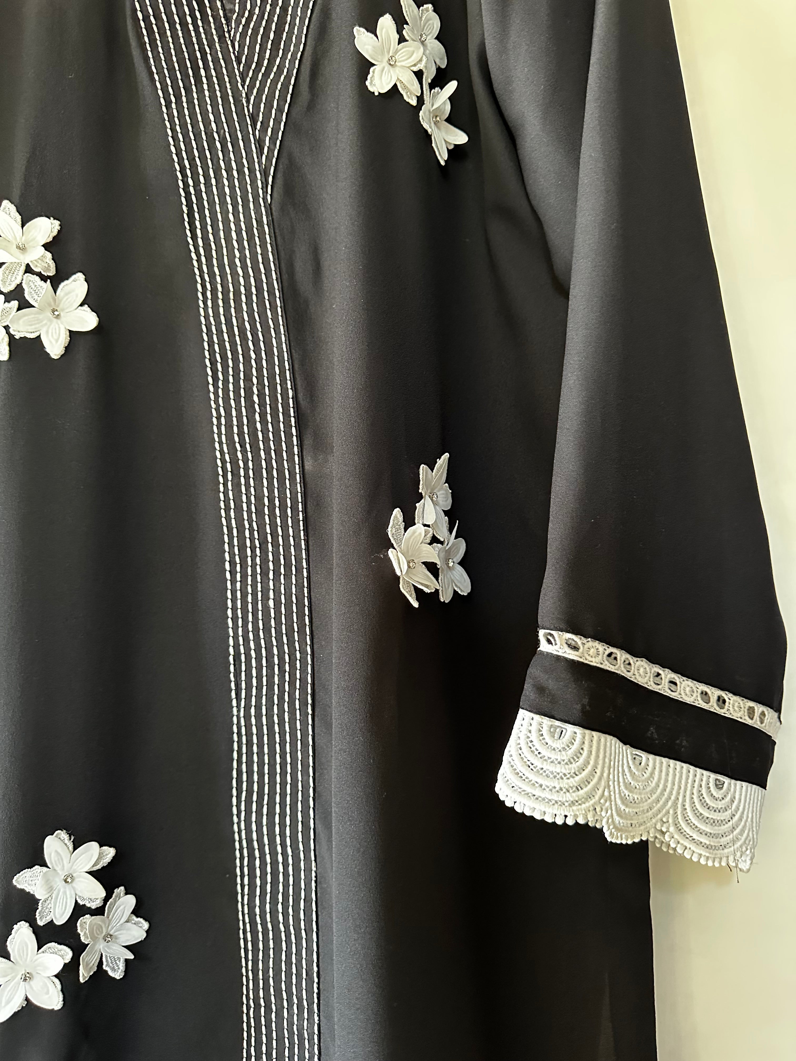 Three piece black beauty with 3D design and elegant stitching with fine details and embellished with milky laces to give it a perfect look.