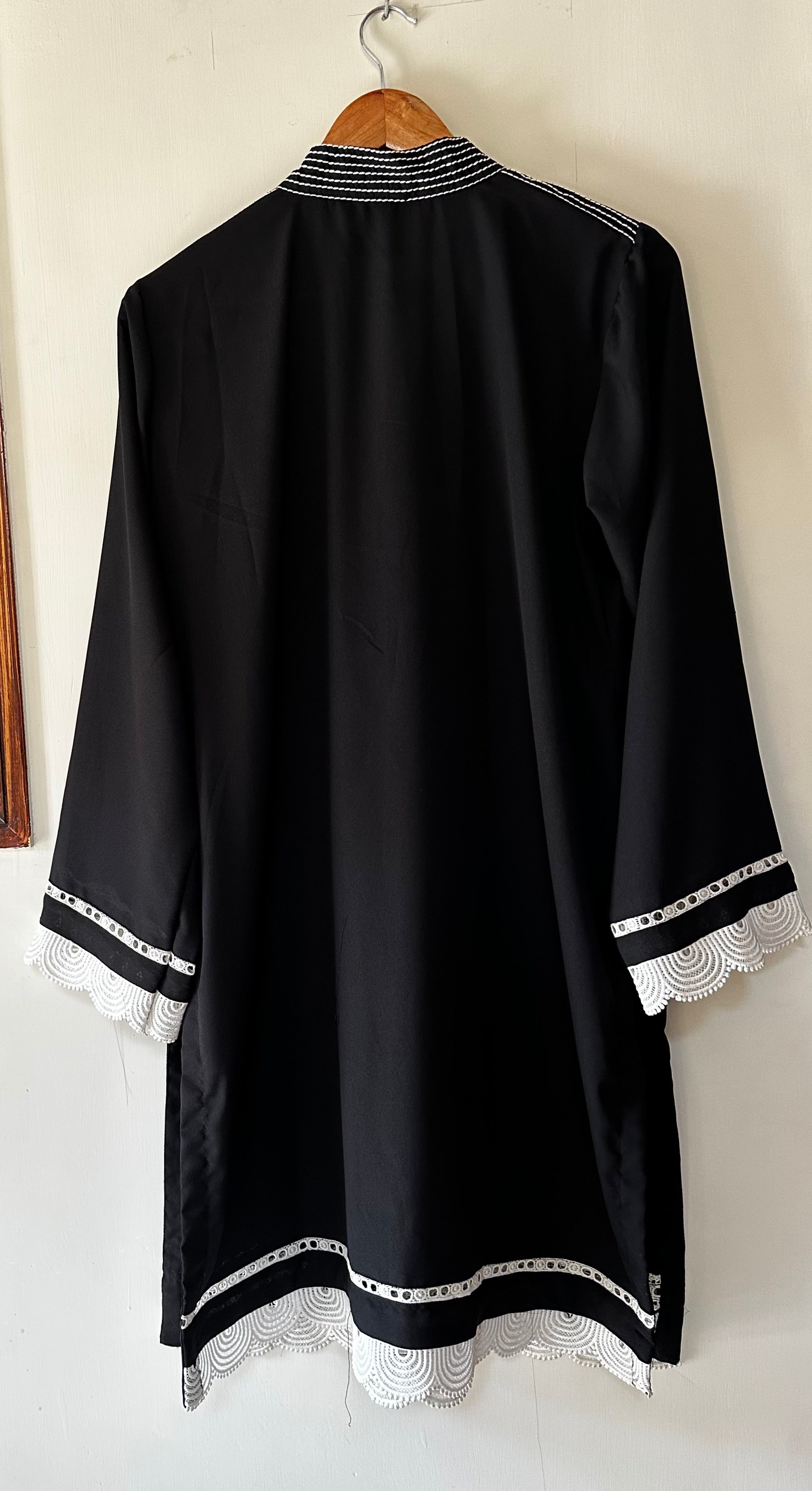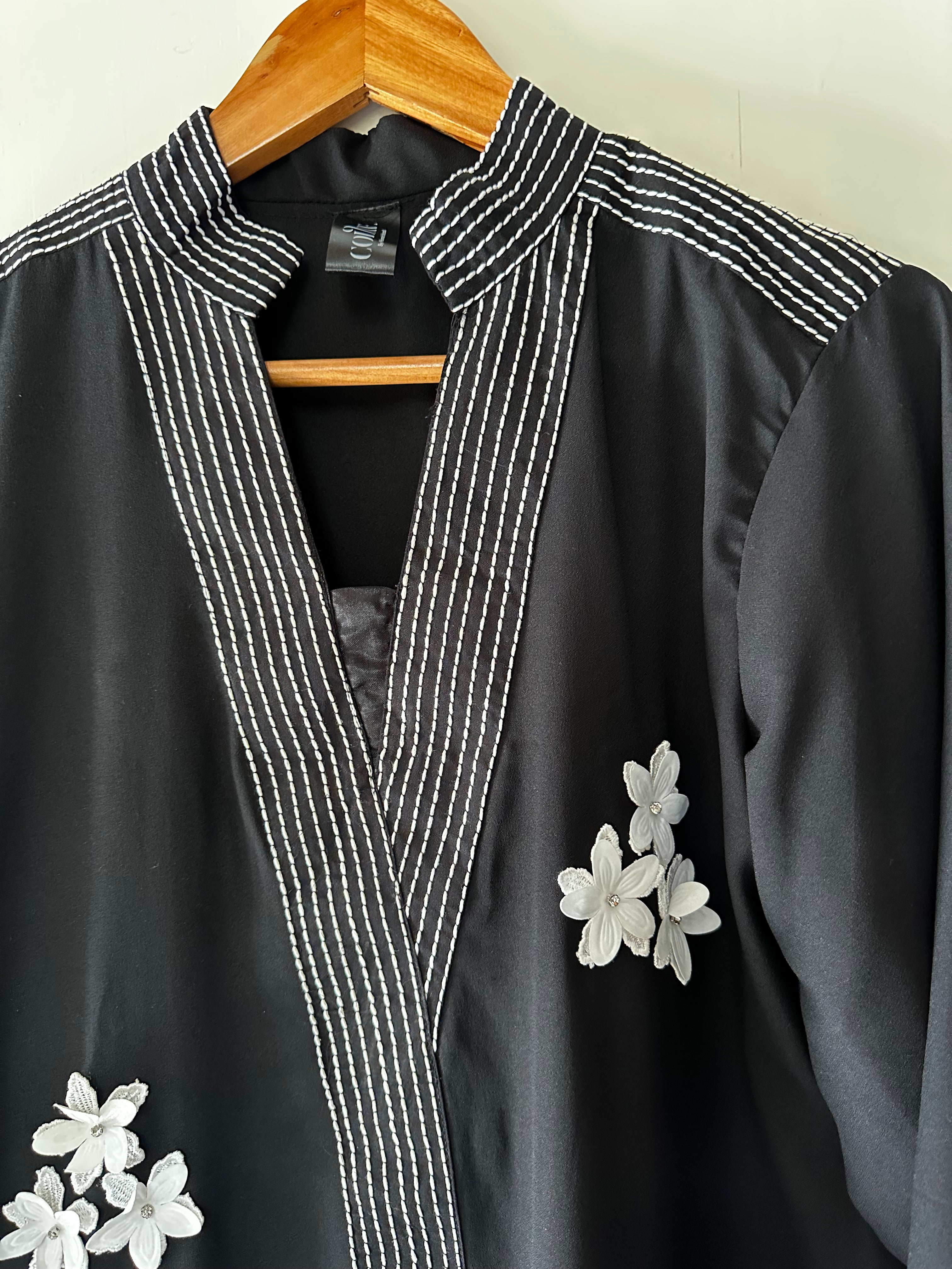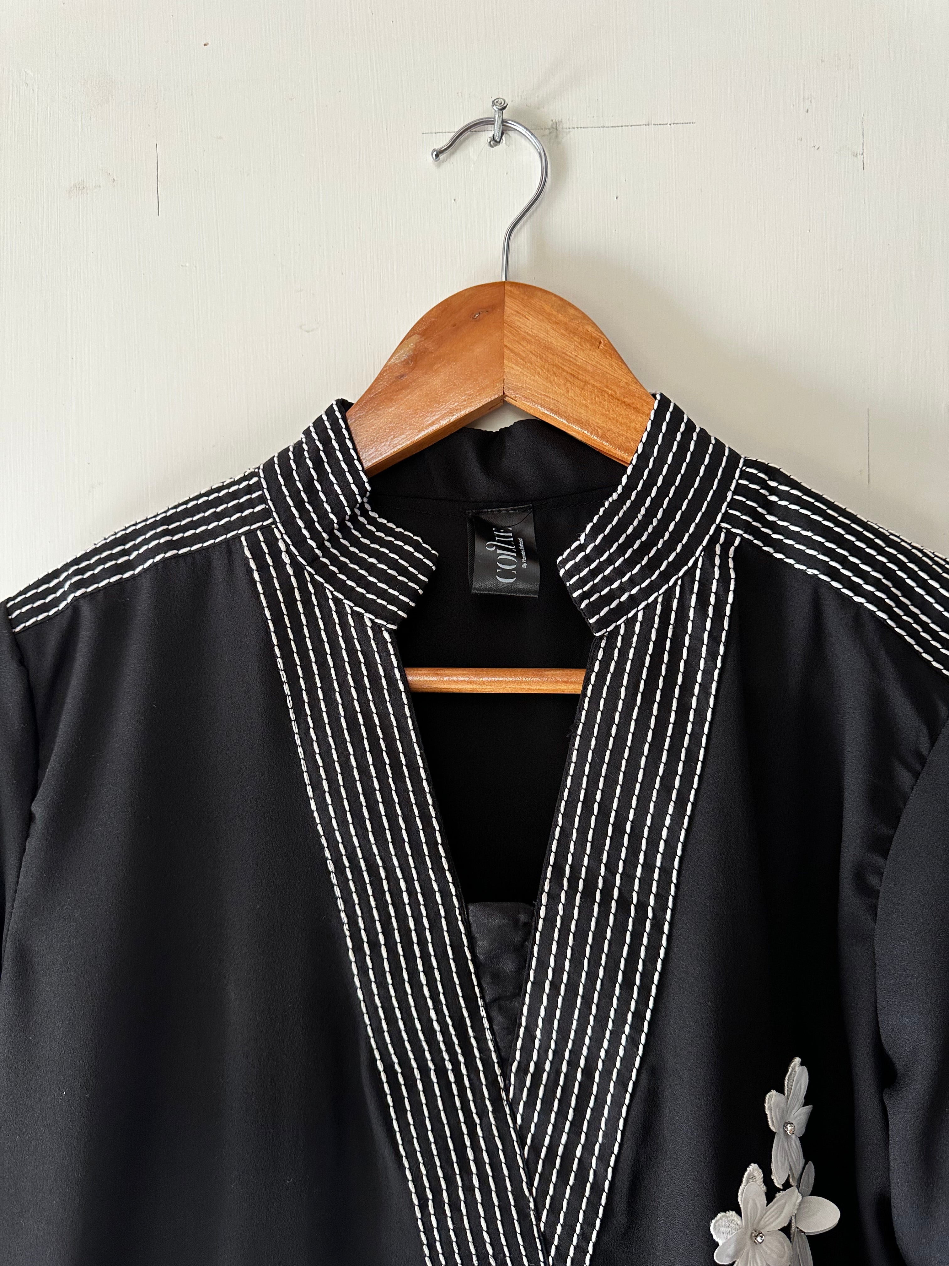 Three piece black beauty with 3D design and elegant stitching with fine details and embellished with milky laces to give it a perfect look.