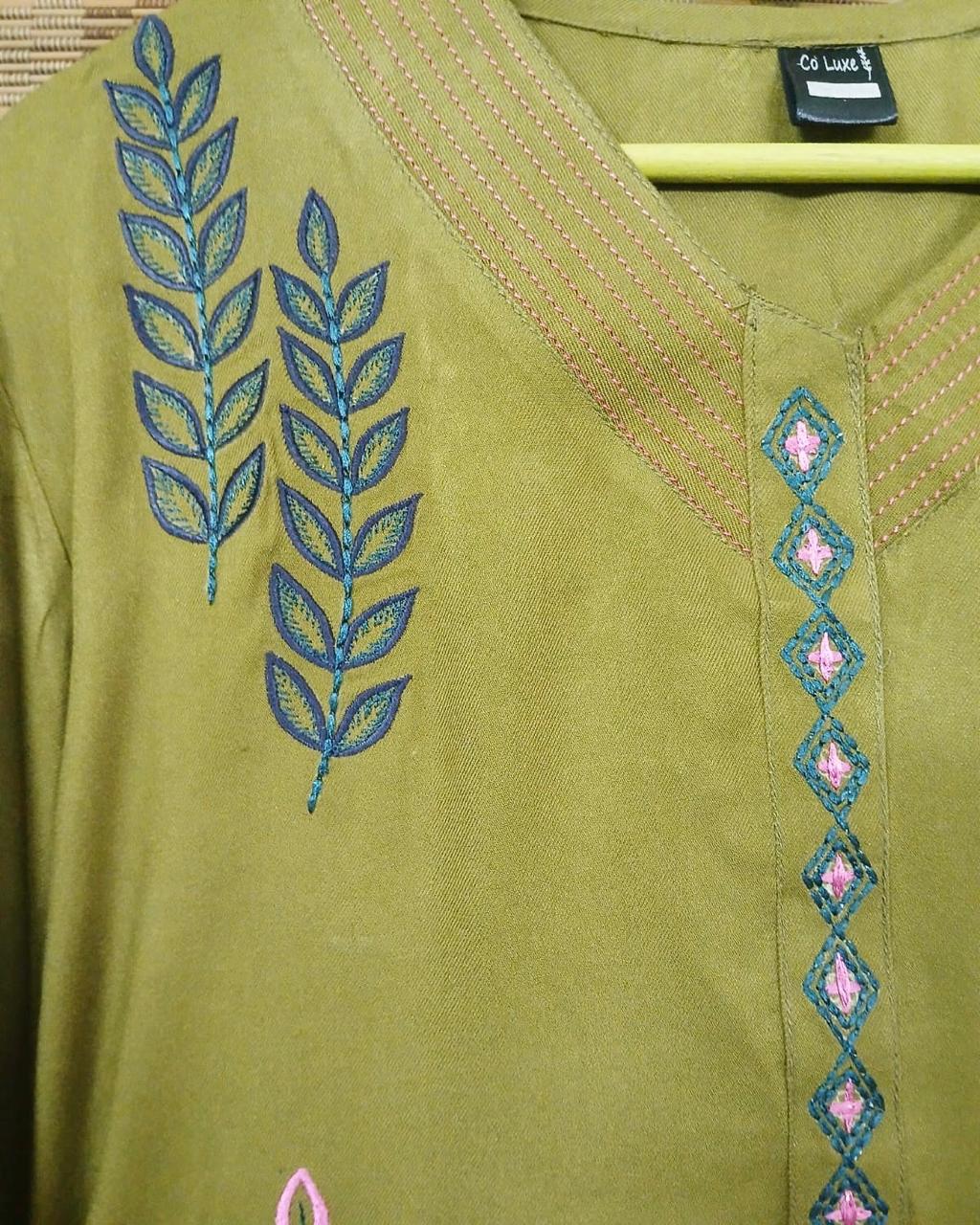Two piece maroon marina co-ord set with thread work and stitching elegance.